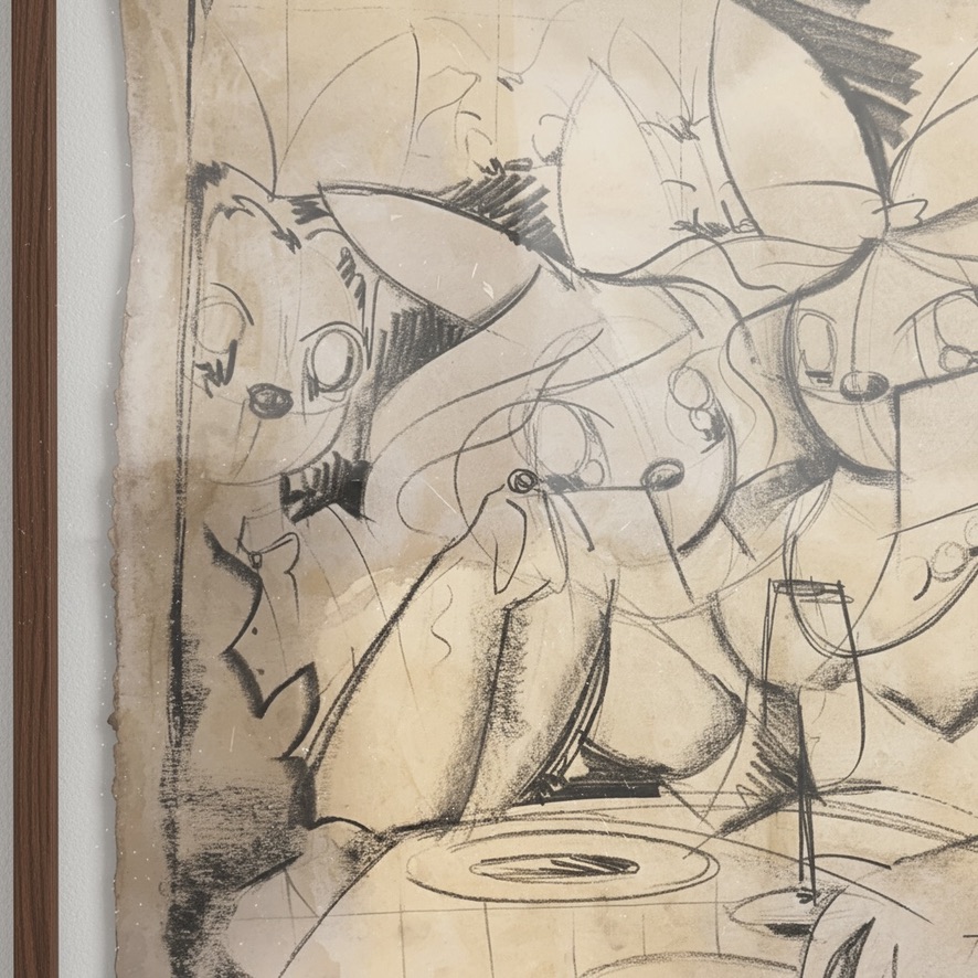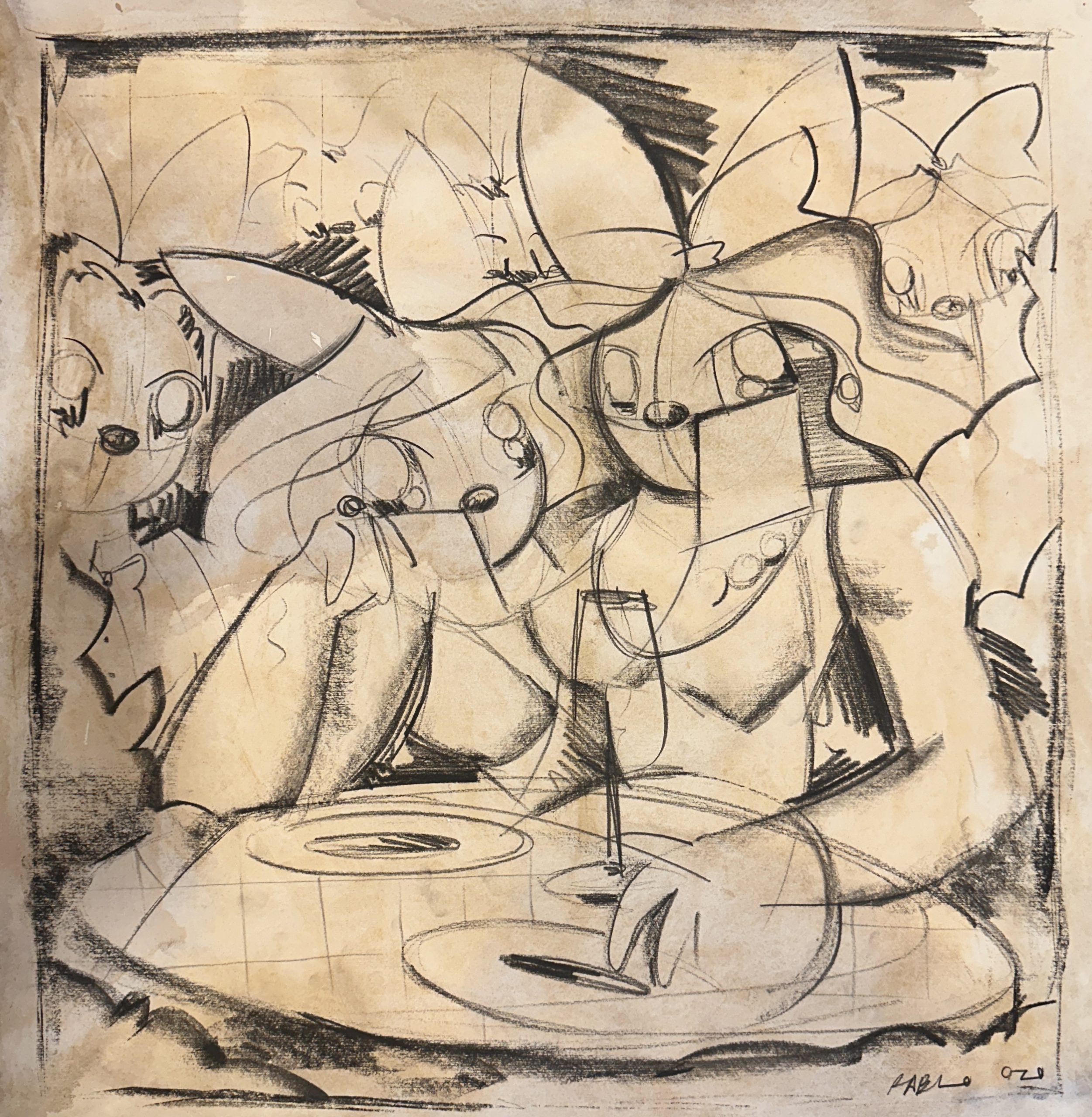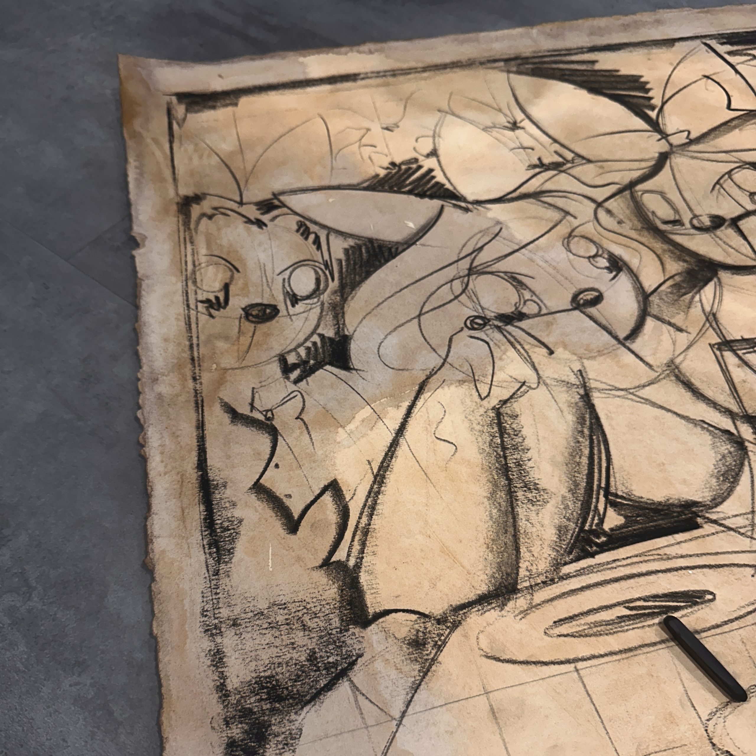 Técnica y soporte: carboncillo sobre papel artesanal envejecido con acrílico y otros materiales